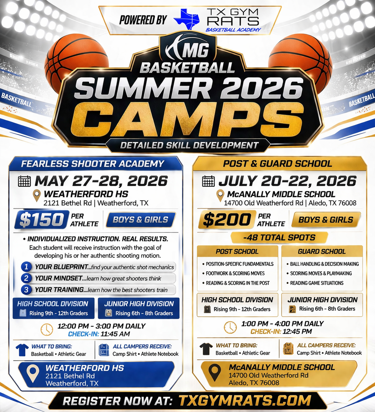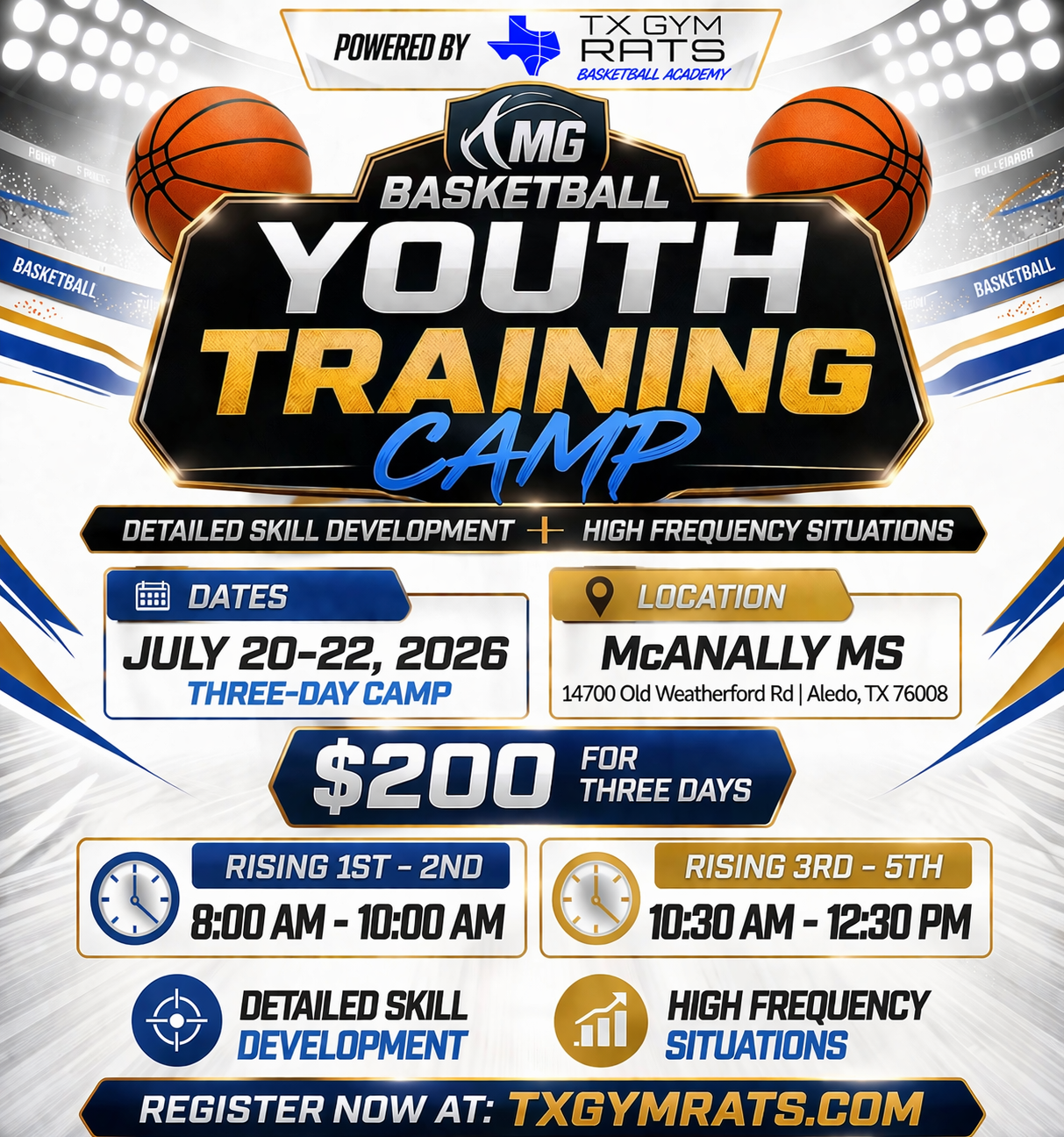 MG Basketball is the exclusive camp provider of TX Gym Rats Basketball Academy. MG Basketball offers multiple training camps throughout the year where athletes can expect detailed skill development that is 100% focused on translating skills into a game setting.