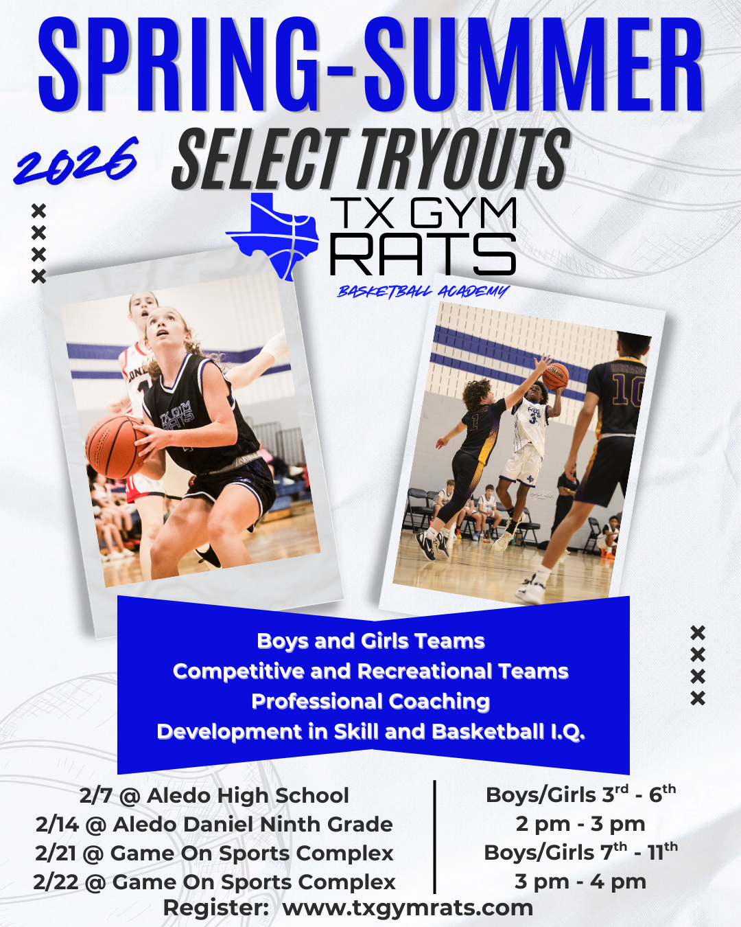 At TX Gym Rats Basketball Academy, we foster the growth of young athletes, both on and off the court. Our programs offer elite training, competitive team play, and a supportive community where players can thrive.